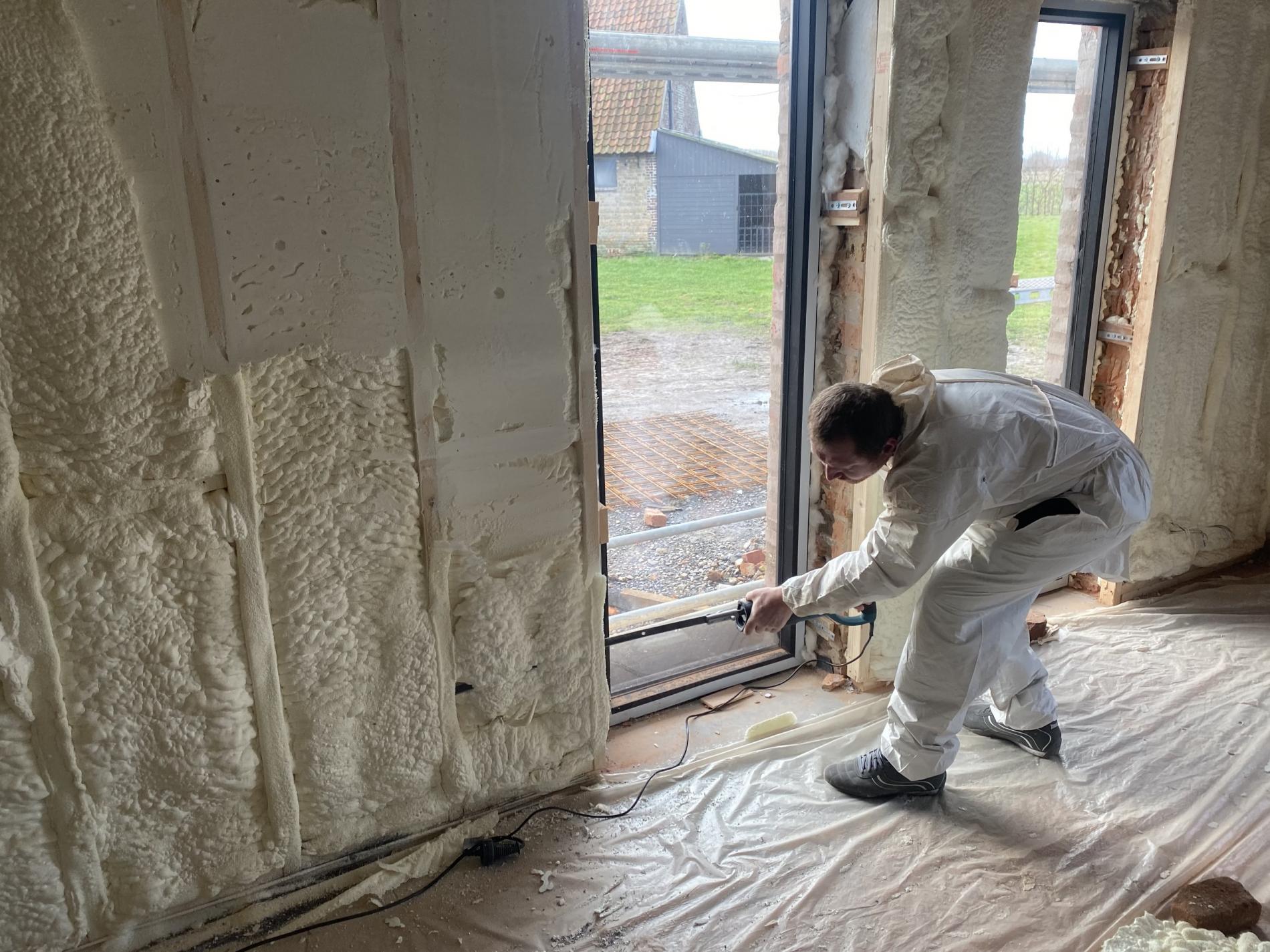 Een van de grootste voordelen van BioFoam is de compatibiliteit met houtskeletbouw. Dit komt omdat het schuim zich perfect aanpast aan de vorm van de muren en zo een naadloze en luchtdichte isolatielaag creëert. Dit helpt om koudebruggen te voorkomen en de energie-efficiëntie te verbeteren.